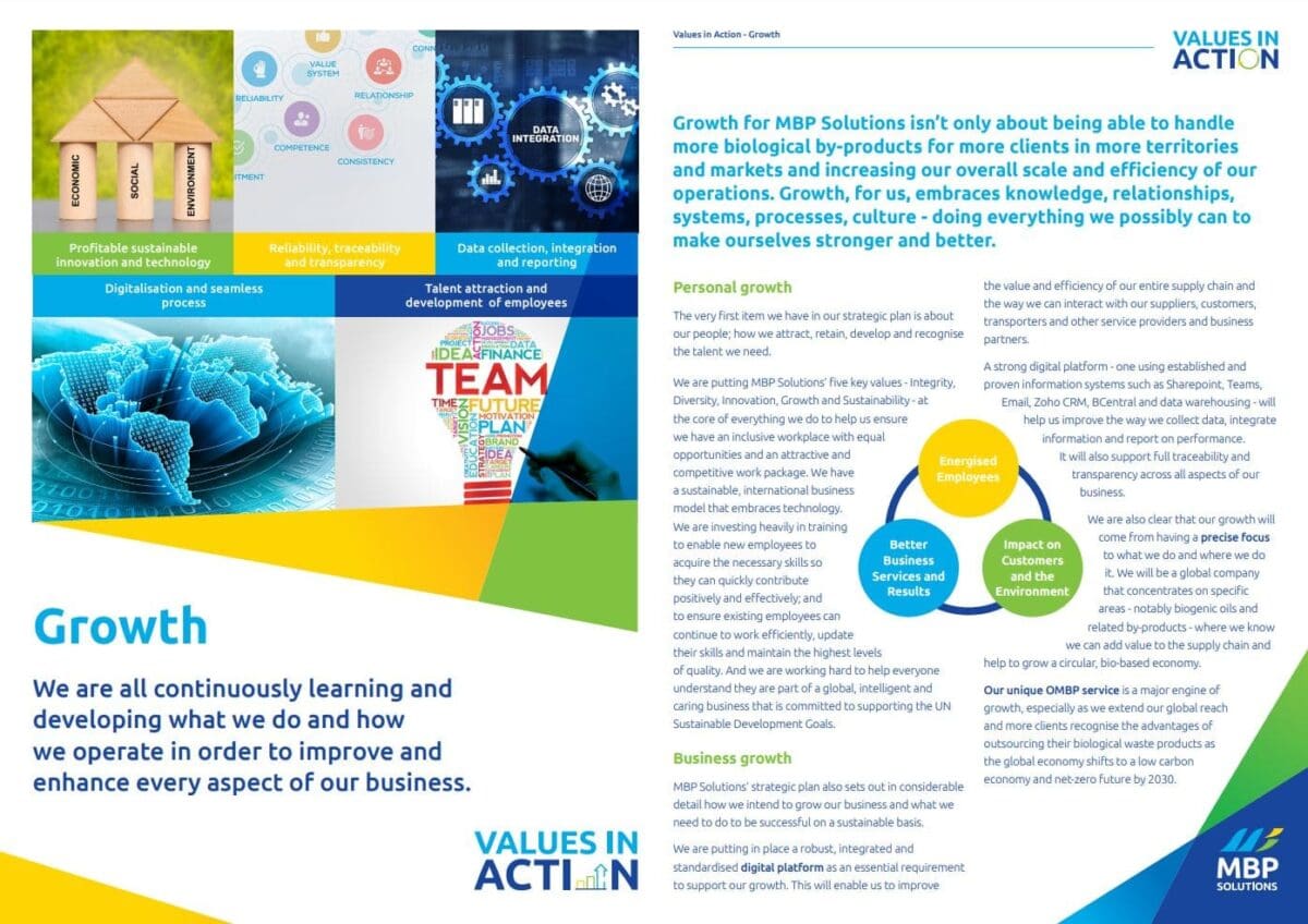 If you look at our WHERE, growth is implicit. To get to where we want to be we will all need to go on a growth journey and support each other en route. Our core MBP Values – Integrity, Diversity, Innovation, Growth and Sustainability – will all play a significant part in shaping and supporting our personal and corporate growth journeys. To be “globally recognised as the go-to partner” we want and need to be bigger and better than we are now. But growth for us isn’t only about being able to handle more biological by-products for more clients in more territories and markets and increasing our overall scale and efficiency of our operations